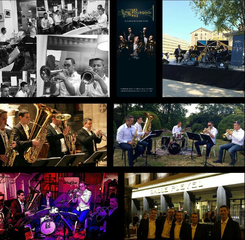 Quand le monde trop sage de la musique se contente de réunir quasi exclusivement des instruments de même famille dans des formations réduites stéréotypées, nous prenons le parti d'apporter la vélocité et la douceur du timbre du saxophone alto à trois instruments de la famille des cuivres (et...pourquoi pas?) : le bugle, le saxhorn basse et le tuba. Une batterie pour la touche rythmique et un répertoire d'un absolu éclectisme et vous obtenez : Les Pourquoi Pas, la musique de vos événements !